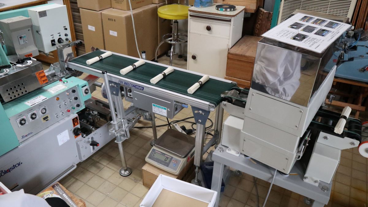 その後、温度や湿度を調整しながら「はた」と呼ばれる機械で麺を乾燥させていきます。