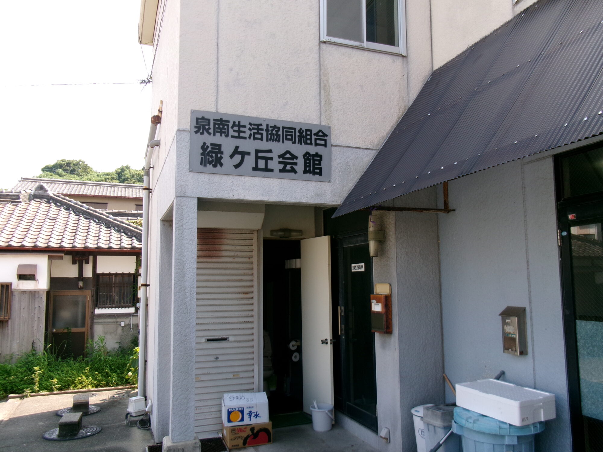 川崎重工から提示された浴場の譲渡金額は60万円だった。生協設立のための出資金を一口200円と定め、一度に出資できない場合は毎月20円の分割払いとして労働組合員や地域住民に生協加入を呼びかけた。こうして集めた資金を深日の農協に預け、それを担保に60万円を借り入れて川崎重工に納付。浴場を資産として大阪府の商工課に生協設立を申請し、1950年3月15日晴れて緑ヶ丘生協が誕生する。設立時の登記簿によると「事業区域は、大阪府泉南郡深日町緑ヶ丘一円若宮門前地域とする」となっている。若宮は緑ヶ丘同様に川崎重工の社宅があったところ、門前には社宅はなかったが社員がたくさん住んでいた地域である。出資金を納めた世帯には(一部出資者にも)浴場の利用券が発行され、甦った共同浴場は「くみあいの風呂」と呼ばれて連日たくさんの利用者でにぎわった。
