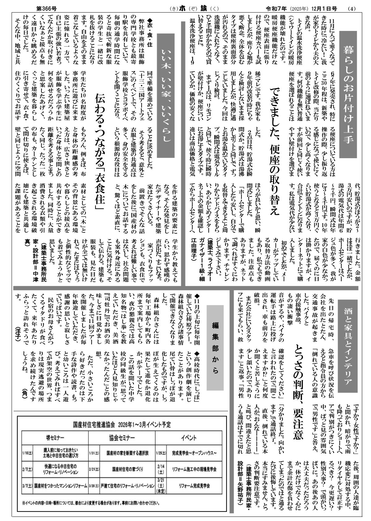【コラム】伝わる・つながる「衣食住」(建築士事務所民家・設計部=中津真)
