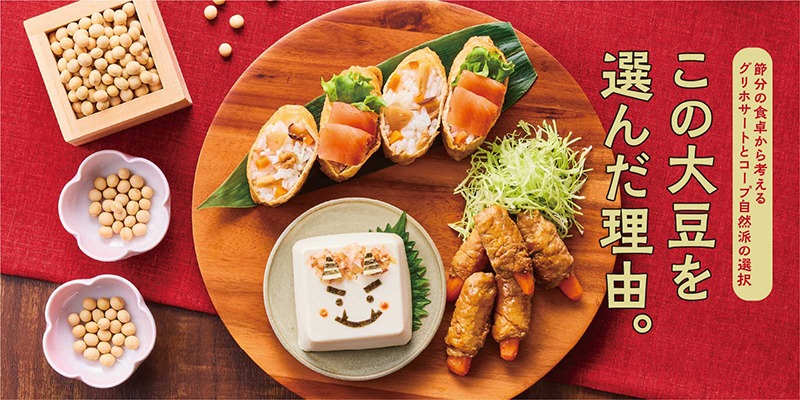 コープ自然派では有機JAS認証または栽培履歴で「グリホサート不使用」を確認できた豆腐・湯葉・納豆・あげ・豆乳商品には商品案内(カタログ)にて「グリホサート」不使用マークを付け、また不使用の確認がとれない商品については、定期的な残留農薬検査を行い「グリホサート」検査済マークを表示しています。