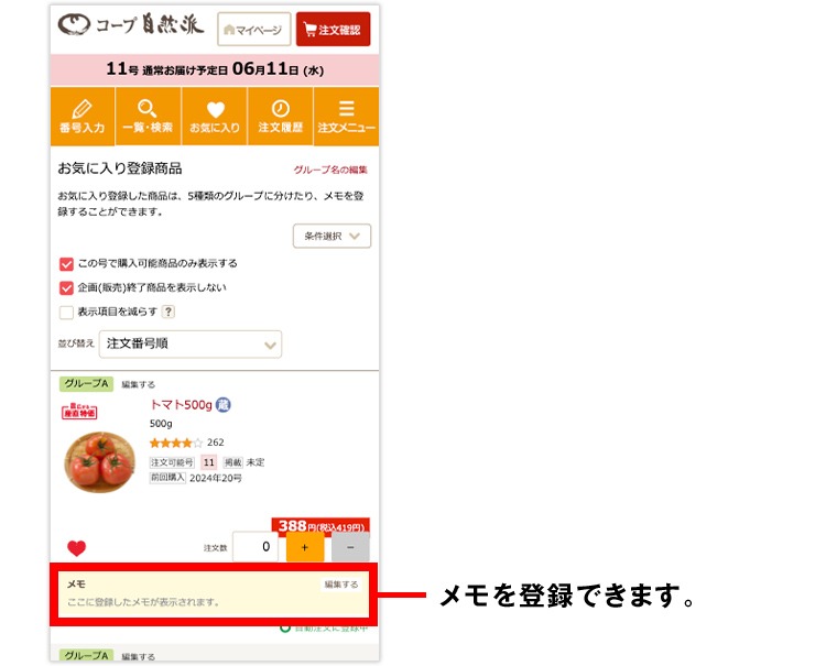 メモの内容は他の組合員さんには公開されません。自由にご利用ください。