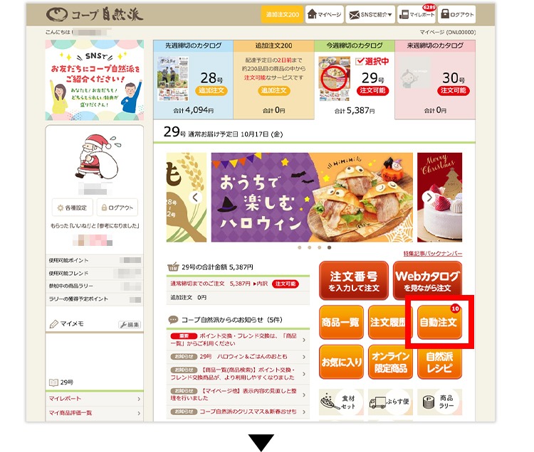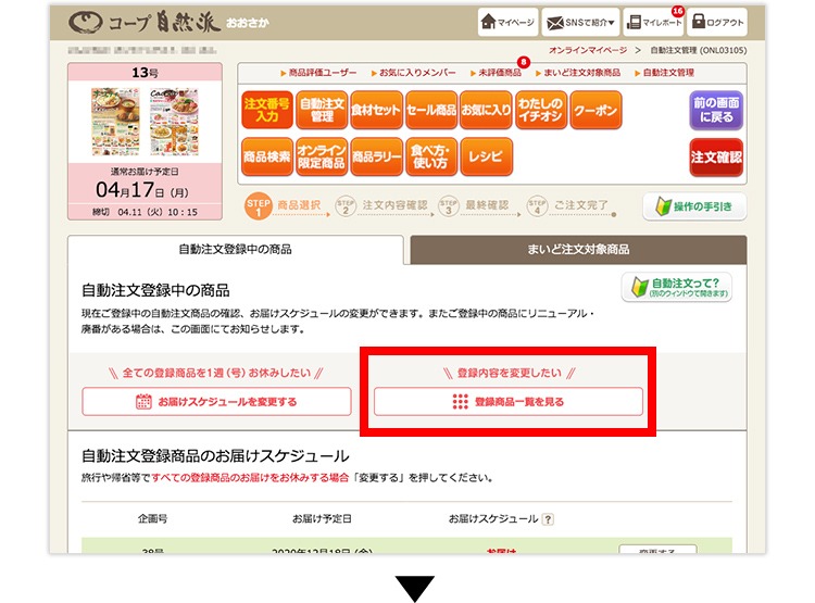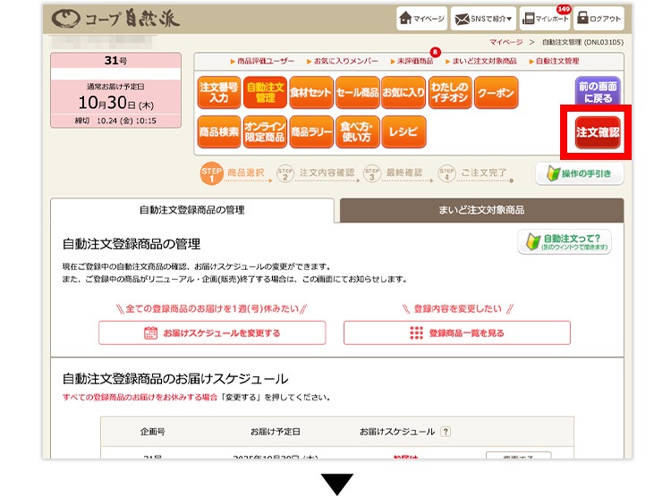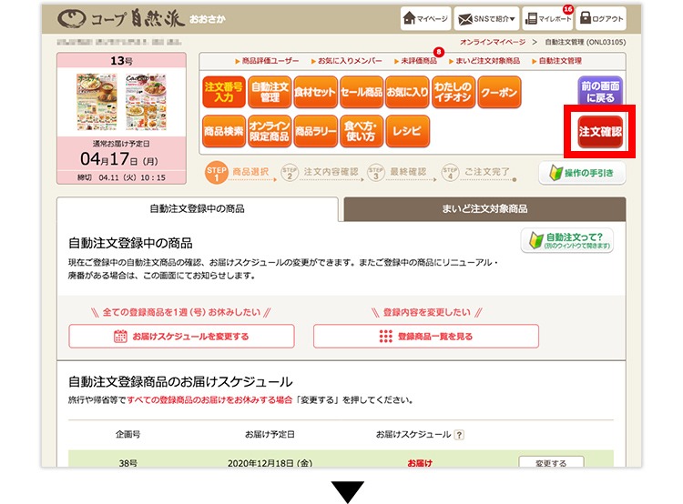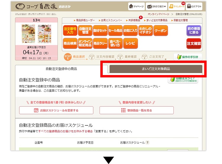 自動注文に登録した商品は、その号に企画(販売)されていれば、自動的に注文されます。
