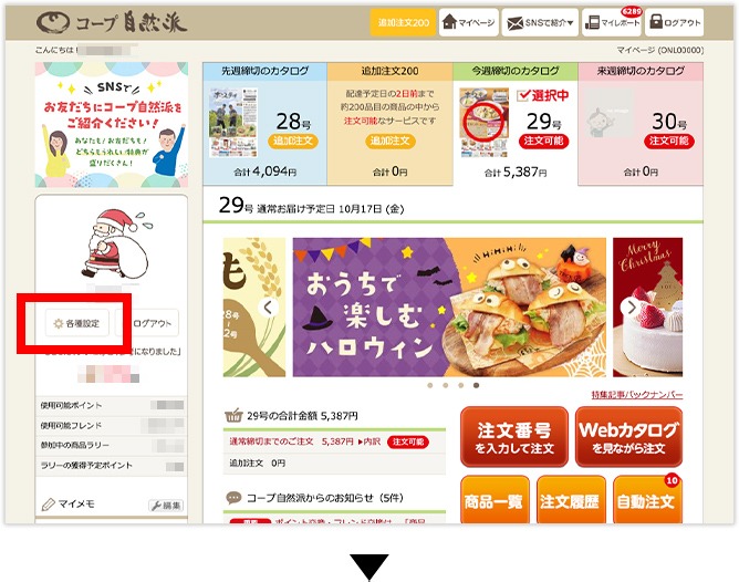 マイページ左側「各種設定」をクリックしてください。