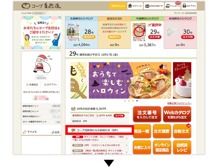 お申し込みいただくと、自然派オンライン上で請求書の照会ができるようになります。