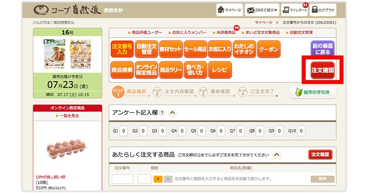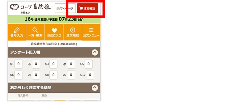 (2)数量変更後は注文確認画面に進み、注文を完了してください。