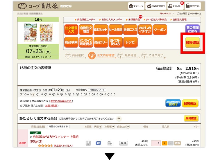 (4)注文確認画面の内容を確認し「最終確認」をクリックしてください。