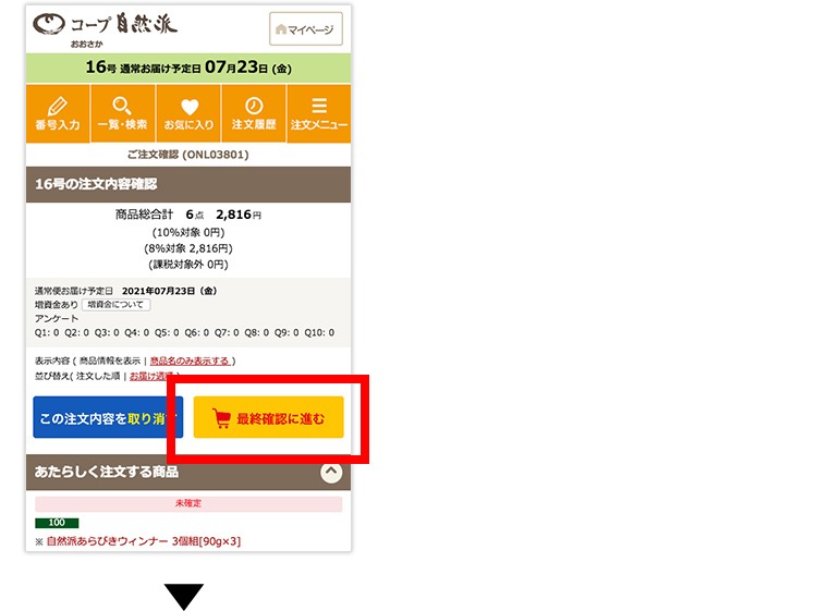 (4)注文確認画面の内容を確認し「最終確認に進む」をタップしてください。