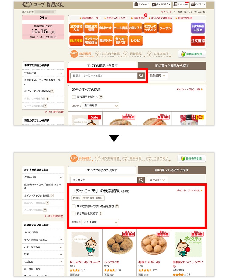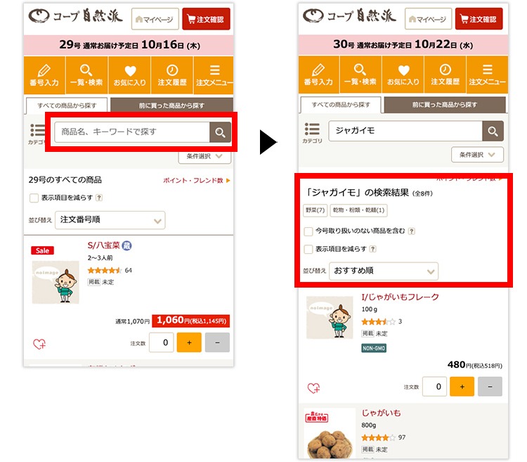 自然派オンラインでは、様々な方法で商品を探すことができます。