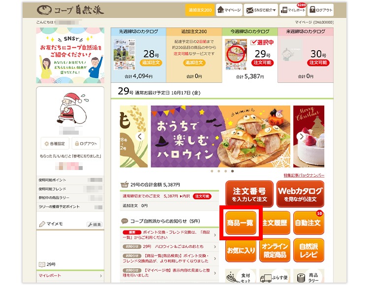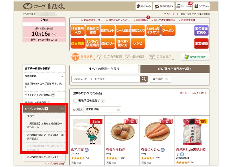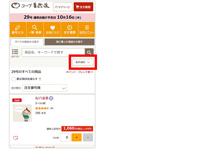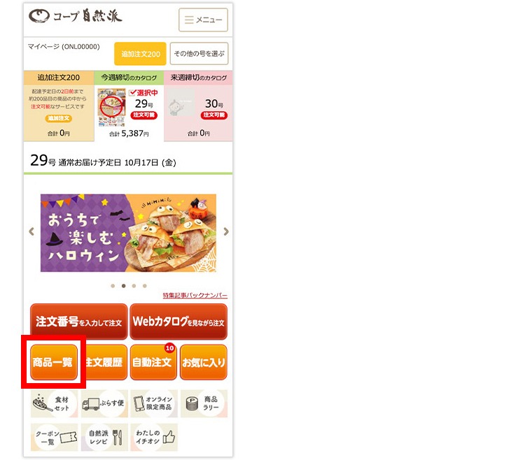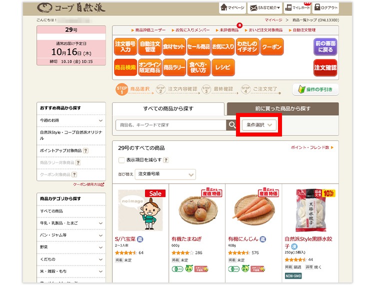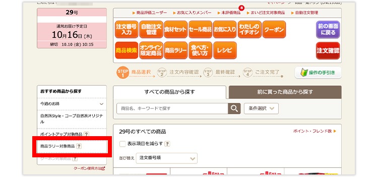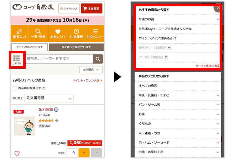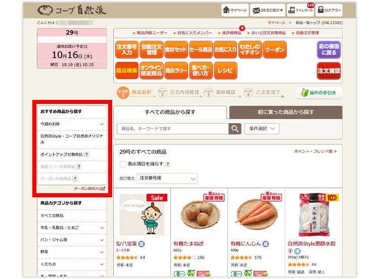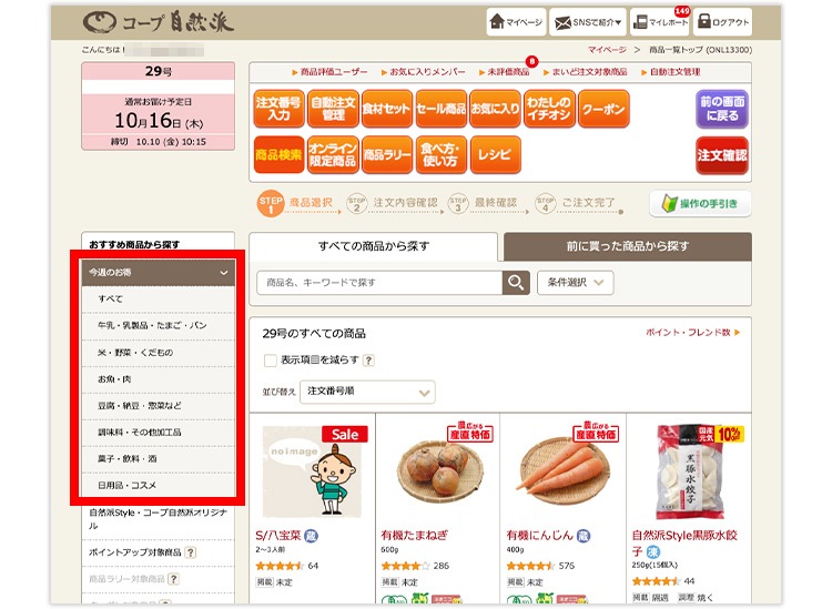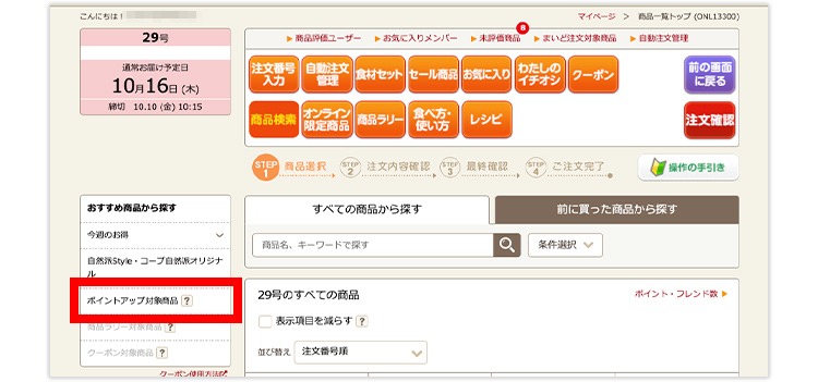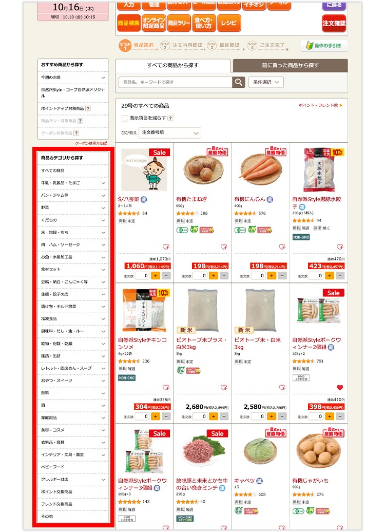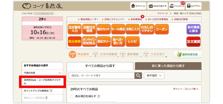 自然派Style・コープ自然派オリジナル商品が表示されます。