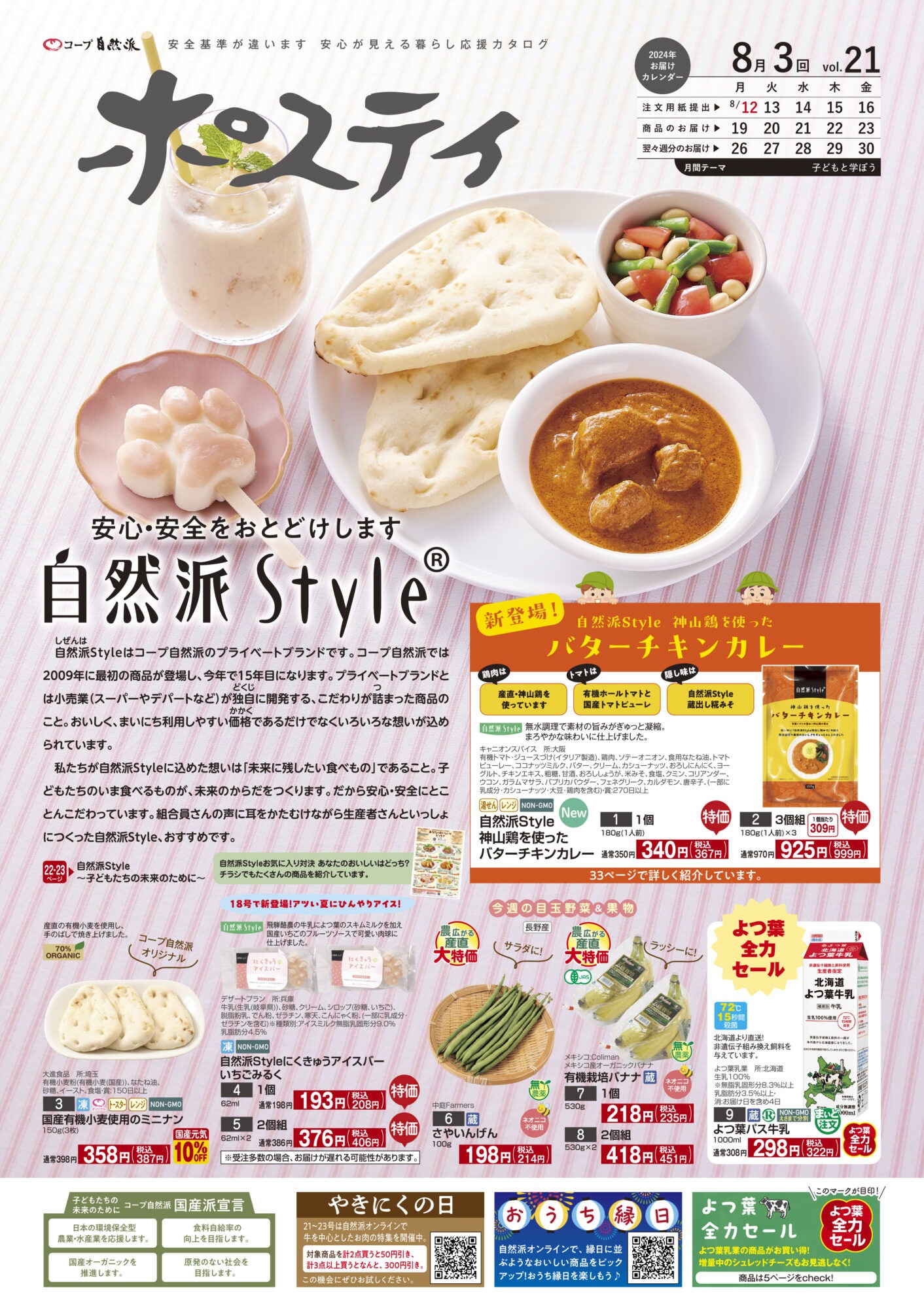 コープ自然派の取組をメインに紹介しながら、特にお買い得な「今週の目玉野菜」も掲載。次のページに続くメニュー紹介も!