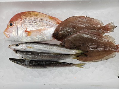 | れんこだい 約500g がんぞうひらめ 約300g かます 約330g |