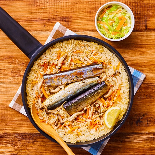 秋感じる「さんまときのこのパエリア」と、「キャベツとにんじんのコールスローサラダ」でおかず&ご飯と小鉢の完成!