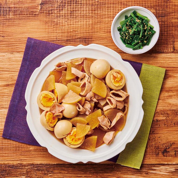 魚介の旨みが染みた「大根とイカのほっこり煮」と、「ほうれん草のごま和え」で和食ごはん!