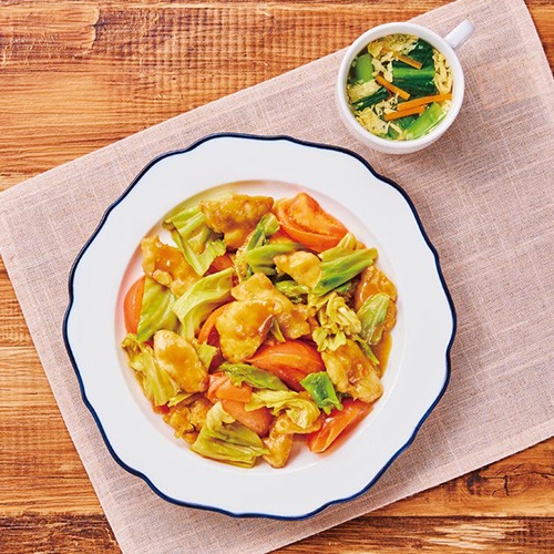 彩り良い「鶏肉とトマトの回鍋肉」と、「小松菜の中華風スープ」でパッと明るい食卓に!