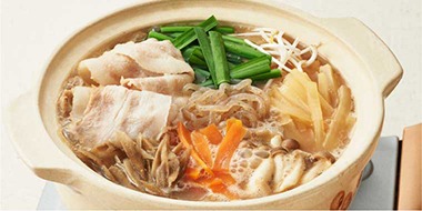 「安心・安全の豚肉を食べたい!」という組合員の願いから誕生したコープ自然派の産直豚「自然豚」(えさまで非遺伝子組み換え[分別管理]/アニマルウェルフェアに配慮した生産体制)、細切りカット済の国産野菜(コープ自然派の産直野菜を優先)、化学調味料不使用のコープ自然派オリジナルのたれ、計量済の片栗粉をセットしています。