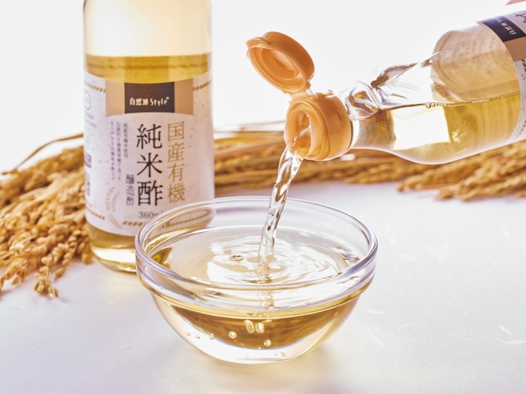 産直の国産有機米を使った純米酢です。菌の力でゆっくりと発酵させる静置発酵で造られています。