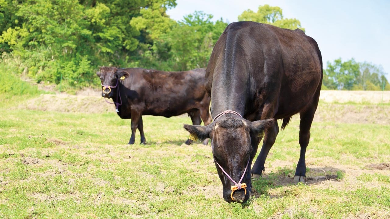 里山で自然の草を食べ、群れで育つ。牛本来の環境で過ごします