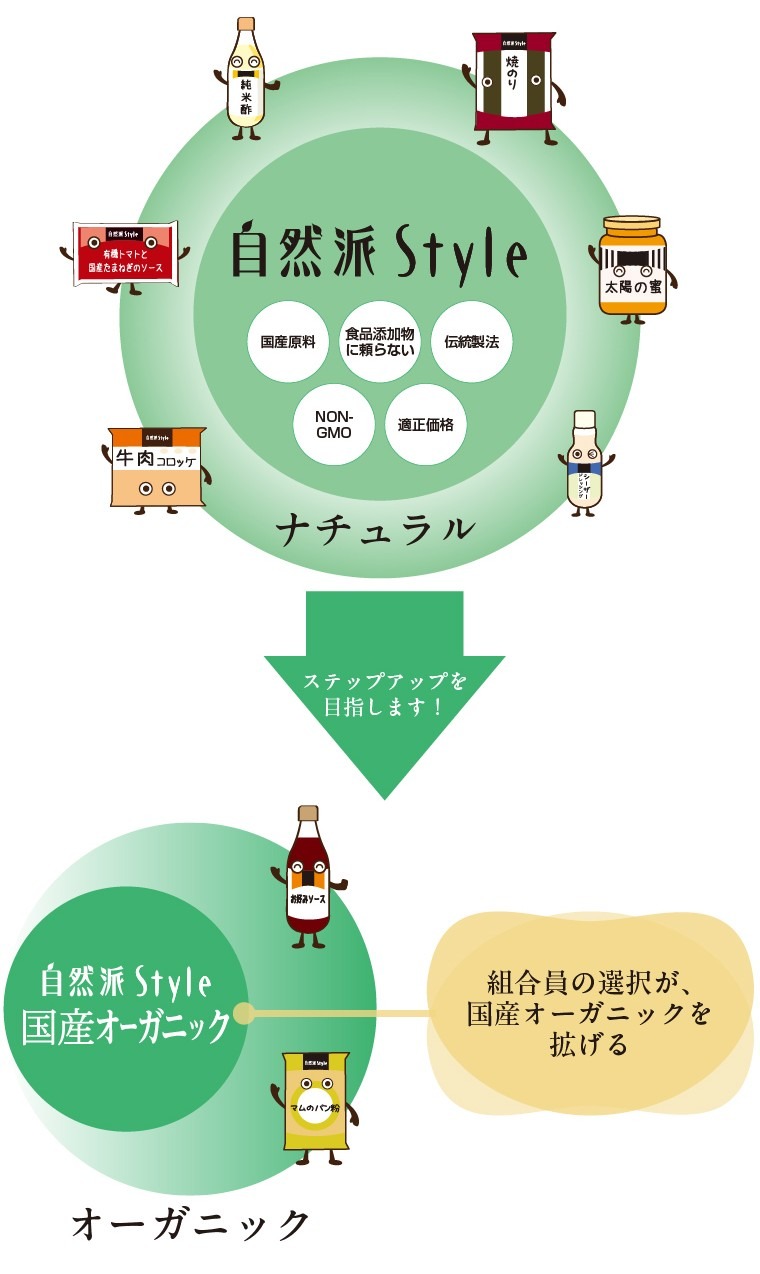 コープ自然派が「国産派宣言」というスローガンを掲げて20年が経ちました。またプライベートブランド「自然派Style」では、国産原料を大切にすること、食品添加物に頼らないこと、NON-GMOを選ぶこと、伝統製法を守ることを変わらぬ基準として積み重ねてきました。これまで組合員が日々の利用を通じて選び続けてきた歩みは、アメリカで見た「ナチュラル」と重なるものがありました。