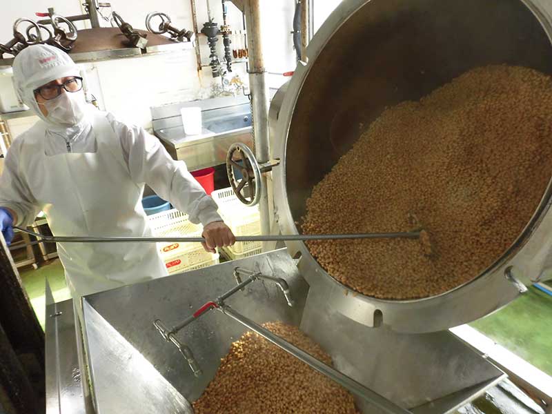大豆の種類、季節等により、浸漬時間及び発酵時間を変えており、蒸留工程につきましても、時間をかけて大豆の芯までふっくらと蒸し上げています。また発酵・熟成の工程ではじっくりと時間をかけ大豆の旨みを十分に引き出すような納豆づくりをしています。