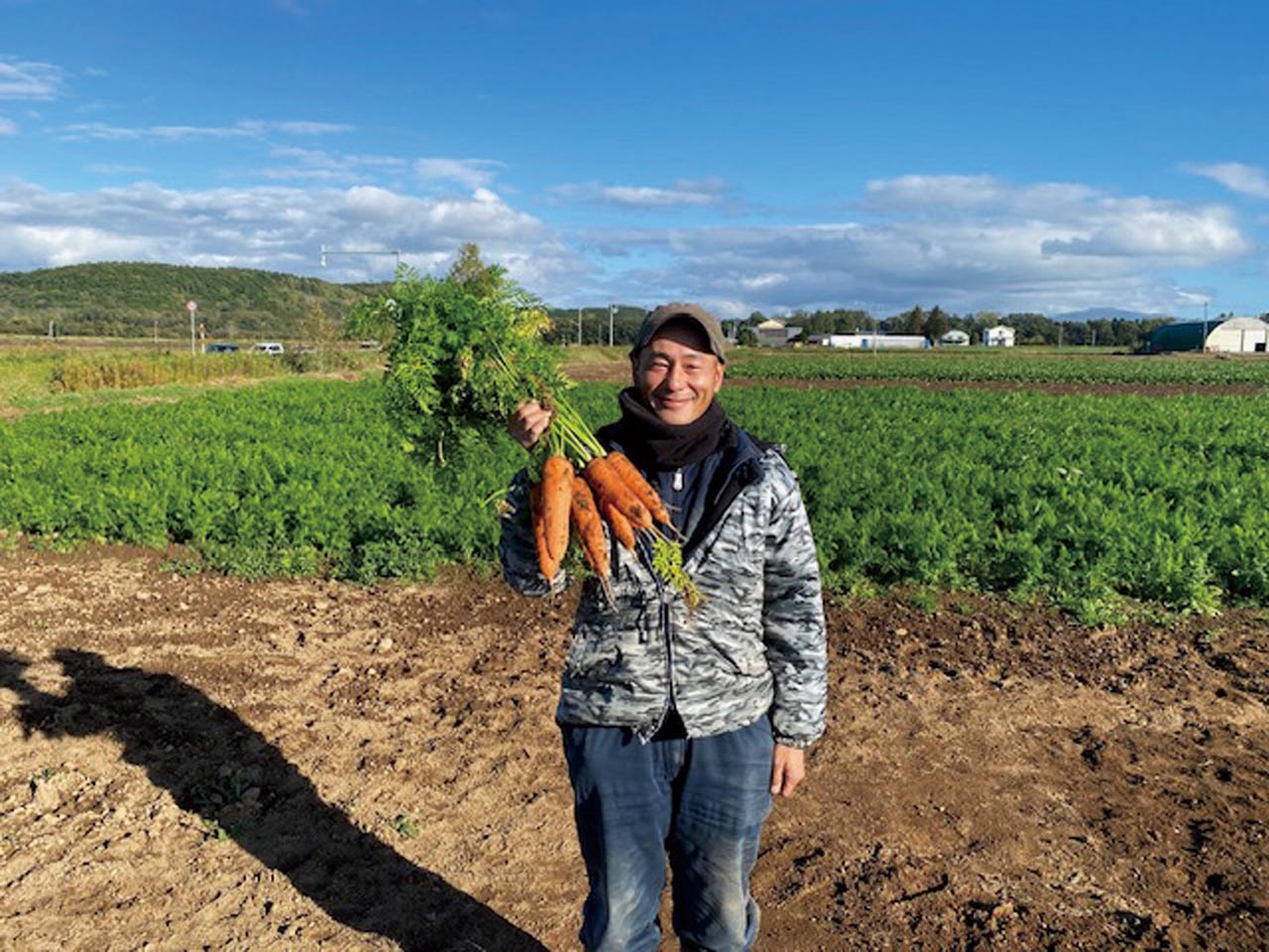 北海道美幌町で有機にんじんを栽培している西島大地です。昨年、大雪を囲む会の一戸さんからビートを有機管理で栽培してもらえないかと依頼があり、自分も有機には興味があったので栽培してみました。思いのほか出来る手ごたえがあって他の作物も作ってみたくなり有機認証を取得しました。今年は有機転換でにんじんを8月収穫で50a、10月収穫で50a栽培しました。