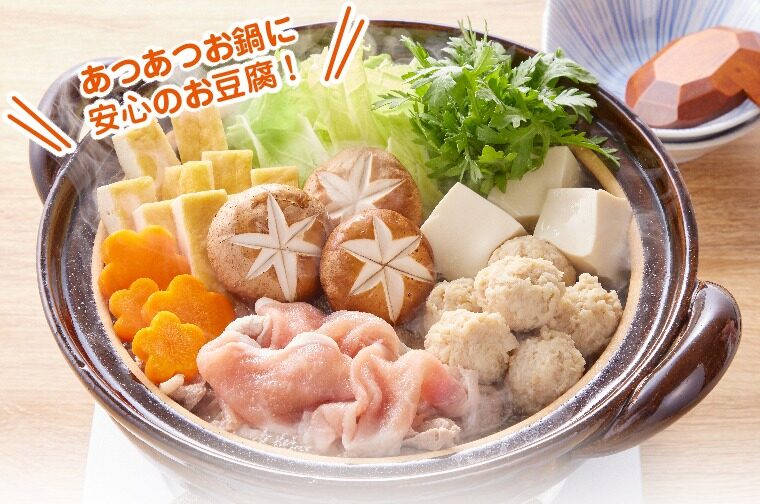 市販の豆腐では、製造を容易にするために、乳化剤や油脂が原料の乳化にがりのほか、消泡剤が使用されています。この豆腐は、そのような食品添加物を使用せず、にがり(粗製海水塩化マグネシウム)で豆腐を作っています。