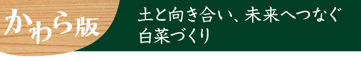 私たちの農業は『土づくりがすべて』です。黒ぼく土の恵まれた環境に甘えることなく、農薬に頼らない栽培を続けるため、炭素率を高めて発酵型の土を育てています。微生物の力で病気や虫を抑え、ふかふかで水はけの良い土を作ることで、えぐみの少ない、やわらかく甘みのある白菜に育ちます。自然相手の農業では台風や気温の変化に悩まされることも多く、農業は決して楽ではありません。それでも挑戦を続けられるのは、コープ自然派の組合員のみなさんが応援してくださるおかげです。